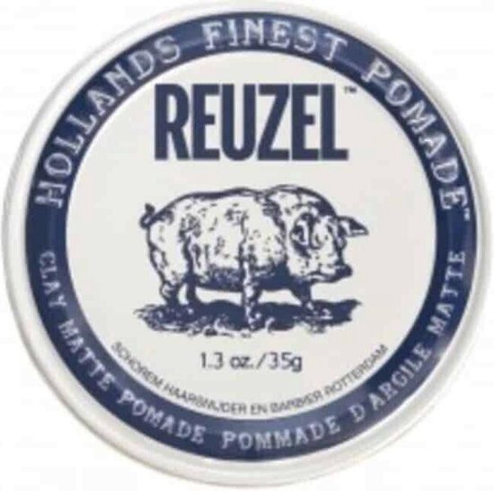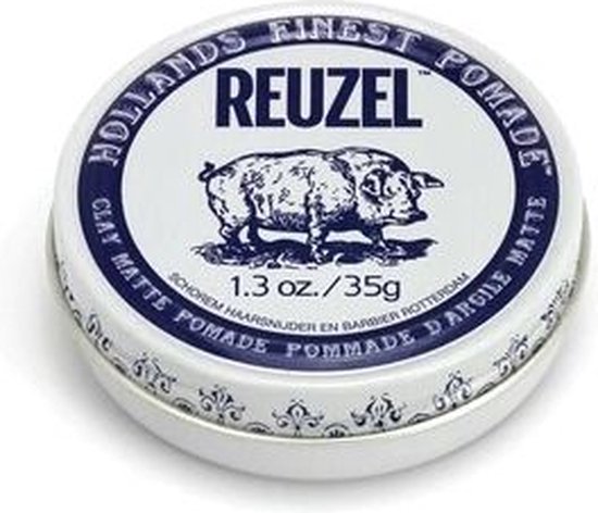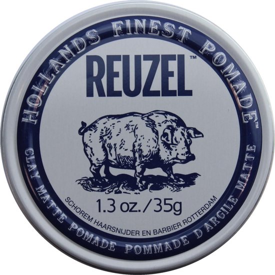 Reuzel Clay Matte Pomade in de Pig variant, geeft je haar een flexibele hold met een matte finish. De Clay is uitermate geschikt voor kort haar. Het kan het beste gebruikt worden om textuur van het haar te benadrukken en meer volume te creeren. Je krijgt hiermee een hele flexibele en sterke hold, zelf krullen en dik haar zwicht onder de hold van de Clay. Door dat het een water-basis formule is wast hij ook gemakkelijk uit.