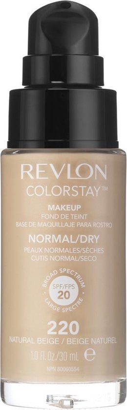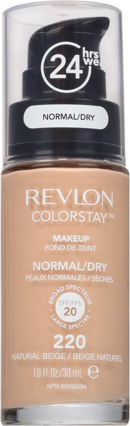 Revlon Colorstay Make-up Normal/Dry Skin Foundation is een foundation voor de normale tot droge huid. De revolutionaire foundation blijft de hele dag perfect zitten zonder te vervagen. Revlon Colorstay foundation is olievrij, bevat SPF15 en vitamine A&E en biedt een medium tot volledige dekking, reguleert de talgafscheiding en vlekt niet. Tip: schud het flesje goed voor gebruik. Breng de foundation aan na je dagelijkse gezichtsreiniging en moisturizer.