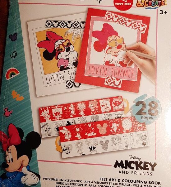 Disney Junior – Kleurboek met vilt – ’’Minnie’’ – Knutselen Felt art – 28 kleurplaten van Minnie Mouse en vriendjes – Mickey – hartjes