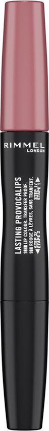De 2-staps applicatie begint met een kleur intensieve vloeistof, gevolgd door een hydra-balsem topcoat om de make up op zijn plaats te houden. Comfortabel op je lippen, het zal niet aankoeken, schilferen of uitdrogen. Zachte, rommelvrije, nauwkeurige applicatie. De Rimmel London Lasting Provocalips lipstick is verkrijgbaar in een reeks van 12 tinten.