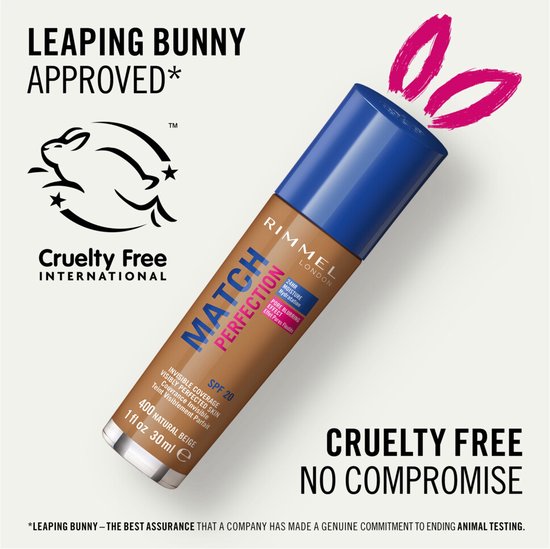 Rimmel London Match Perfection foundation bevat een nieuwe formule met SPF 20. Het creëert een unieke synergie tussen huid en foundation. De make up foundation hydrateert tot 24 uur lang en beschermt de huid tegen externe factoren dankzij de moisturizer bestanddelen en Vitamine E. Voor een zichtbaar verbeterde en stralende huid. Rimmel laat jou zijn wie jij bent. En net als London, staat Rimmel voor cool, onvoorspelbaar en edgy. Zelfexpressie zonder regels: wees jezelf, altijd echt en toegankelijk. Live the London Look!