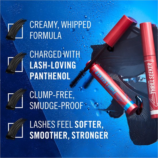 Ga voor een wimperlook met opvallend veel volume, zonder dat dit de wimpers verzwaart. Nu ook verkrijgbaar in een waterproof versie! Met de Thrill Seeker zwarte waterproof mascara van Rimmel London.