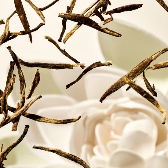 WITTE THEE – Witte thee is een licht geoxideerde theesoort die voornamelijk in China wordt verbouwd. Tegenwoordig komt de thee ook van theeplantages in het oosten van Nepal, het noorden van Thailand, het zuiden van Sri Lanka en India. Witte thee geeft ons parfum een frisse en zuivere geur met een licht bloemig accent. Van witte thee wordt gezegd dat het de zintuigen verscherpt.