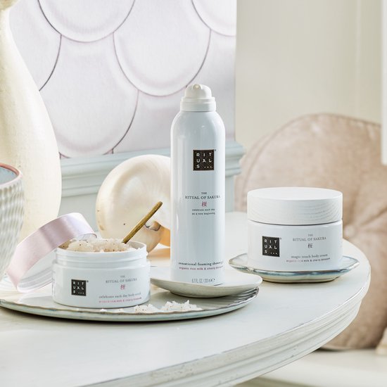 Onze meest verkochte bodycrème van The Ritual of Sakura is precies wat je nodig hebt om op te bloeien. Dankzij de speciale technologie breng je deze fluweelzachte crème gemakkelijk aan en wordt de huid gevoed en verstevigd. De formule met de heerlijke geur van kersenbloesem en rijstmelk bevat antioxidanten, vitamine C en Centelle Asiatica voor de zachtste huid ooit.