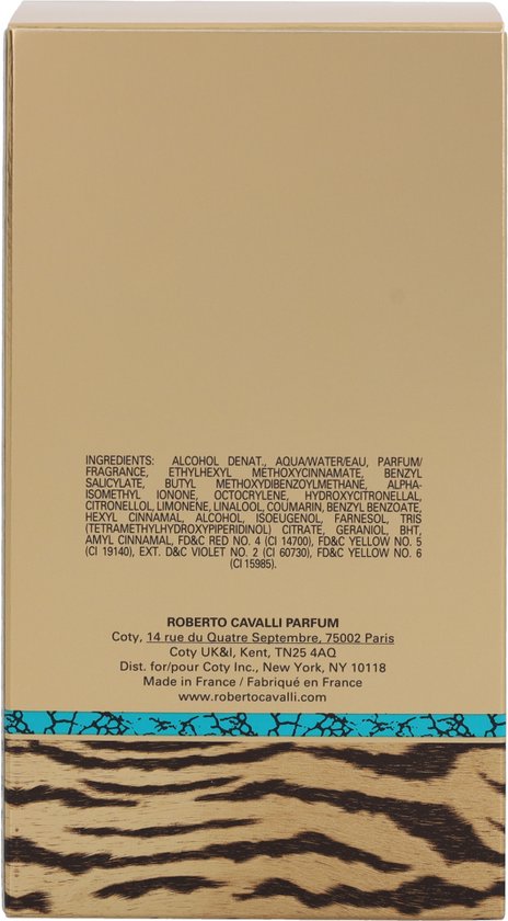 I have a woman in mind when I design she is a positive person cheerful joyful and confident has glamour in her veins is a master of her own destiny nI love women who are independent free and strong willed nA strong personality is the sexiest thing to me nnThe artistic line of the Roberto Cavalli perfume bottle recalls the voluptuous curves of a sensual woman nThe solid glass base evokes the strength and the power of its character nCrowned by a tiara shaped cap formed by Roberto Cavalli s golden seal the bottle is adorned with a tiger print necklace reminiscent of its creators emblematic animal prints