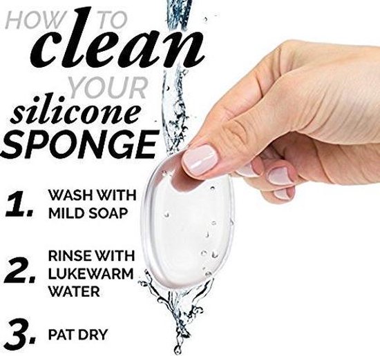 Met de siliconenspons kunt u gemakkelijk Foundation en poeder aanbrengen op uw gezicht. Dankzij de twee zijdes is de spons ideaal in gebruik. U kunt met de siliconen zijde vloeibare make-up aanbrengen op uw gezicht en de poeder kan worden aangebracht met de stoffen zijde. Reinig de spons regelmatig in warm en mild zeepwater, spoel grondig en laat het opdrogen.
