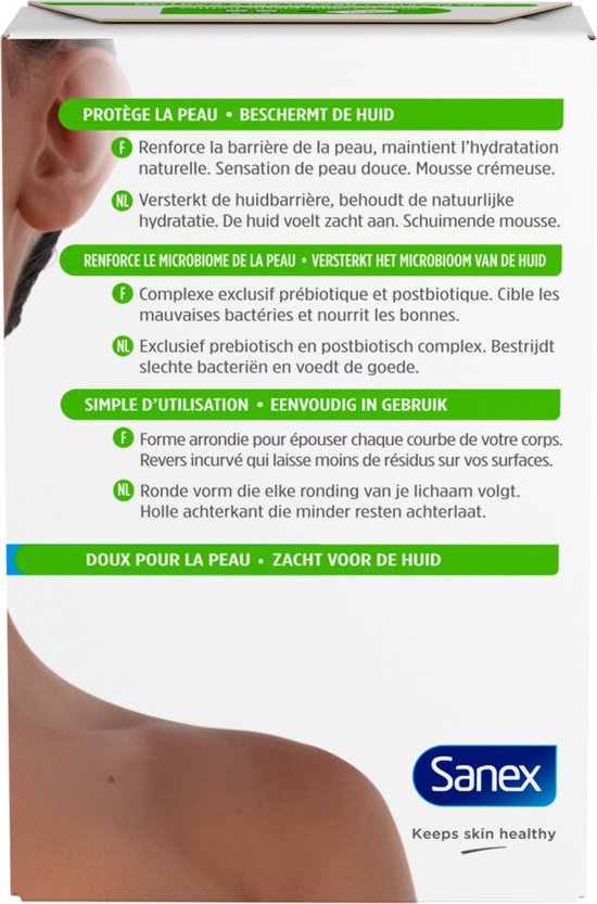 Sanex Bodybar BiomeProtect Hydration voor gezicht, lichaam en handen. Versterkt de huidbarrière en behoudt de natuurlijk hydratatie. De huid voelt zacht aan. Daarnaast bestrijdt de Sanex Bodybar BiomeProtect Hydration de slechte bacteriën en voedt de goede.
