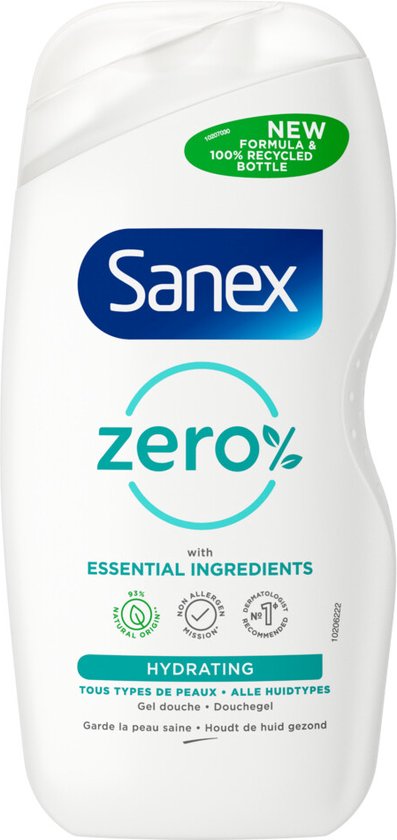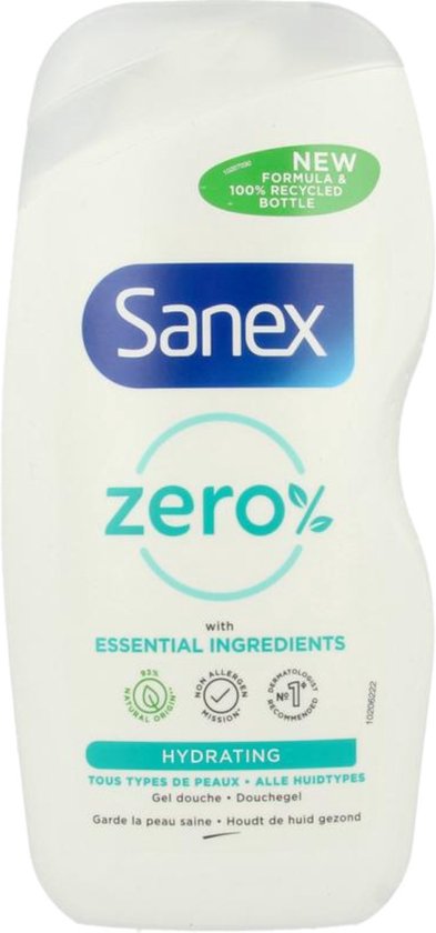 Sanex Zero% douchegel bevat een minimale hoeveelheid aan ingredinten voor een schone en gehydrateerde huid. Het houdt de huid gezond en respecteert het milieu. Dermatologisch getest.