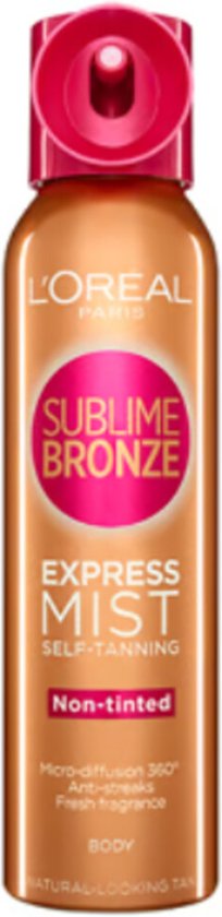 De L’Oréal Paris Sublime Bronze Self Tan Body Spray zorgt voor een natuurlijk bruin resultaat, het hele jaar door. Niet getint. De 360 graden micro-verstuiftechnologie zorgt voor een gelijkmatige verdeling van de zelfbruiner over je huid.
