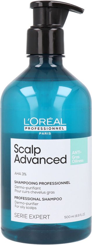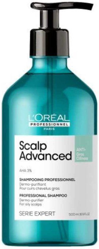 L’Oréal Professional Scalp Advanced Anti-Oiliness Dermo-Purifier Shampoo Voor Een Vette Hoofdhuid is speciaal ontwikkeld voor een vette hoofdhuid en vet haar. De lichte gel zorgt voor een frisser en schoner gevoel. Het zuivert de hoofdhuid en het haar van productresten, zweet en talg en is geconcentreerd met 3% AHA. Het helpt de hoofdhuid te zuiveren en cellen te vernieuwen. Door de lichte werking verzwaart het haar niet en geeft het het haar een mooie glans!