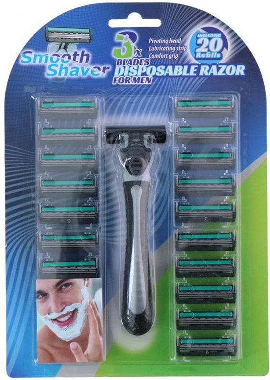 Scheermessenset 21-delig 3blades voor mannen-Scheermes met 20 navulmesjes