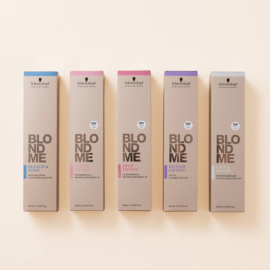 Schwarzkopf Professional – Blond Me – Blonde Toning Creative Tones – 60 ml na elke oplichtingsbehandeling vormt dit essentiële product de laatste onmisbare stap. De toner levert perfecte blonde resultaten en verrijkt zowel opgelichte als donkere haarbasissen, evenals natuurlijk blond haar. Het is ideaal voor toepassingen zoals low lights en het vervagen van de aanzet, waardoor een verfijnde toonverbetering ontstaat. Specifiek ontworpen voor haarbasissen tussen niveau 5 en 8, zijn alle tinten onderling mengbaar, waardoor er eindeloze creativiteit mogelijk is. De Deep Toning is voorzien van de geïntegreerde Anti-Metal Bond Protection Technology, die de haarvezel tijdens de behandeling beschermt en zo minimale haarbreuk voorkomt. Bovendien garandeert de HydroLock Technologie verbeterde hydratatie. Belangrijkste eigenschappen * Voor gebleekte donkere ondergronden en natuurlijke basis 5-8 * Ideaal voor low lights en root blending * Verfijnde toonverbetering * Veelzijdige consistentie voor applicatie met fles en kwast * Anti-Metal Bond Protection Technologie voor minimale haarbreuk * Hydrolock Technologie voor verbeterde hydratatie * Ammoniakvrij * pH-neutrale formule * Minimaliseert extra haarstress * Vegan & cruelty free * Duurzaam Gebruiksaanwijzing * Breng aan op vochtig haar. Indien je deze toners direct gebruikt na een blondering of oplichting, het haar eerst neutraliseren met het Blond Me Keratin Restore Bonding Mask. * Meng de Schwarzkopf Blond Me Blonde Toning met de Schwarzkopf Blond Me Premium Developer in een ratio van 1:1. Aanbevolen developers zijn 2% bij opgelicht haar en 6% op natuurlijk blond haar. * Meng de producten tot een homogeen mengsel. Breng het mengsel direct na de bereiding aan op het haar. Gebruik voldoende product voor een gelijkmatig en langdurig kleurresultaat. * Laat tot 30 minuten inwerken, controleer regelmatig en voeg geen extra warmte toe. Spoel grondig uit en verzorg het haar met de Blond Me verzorgingsproducten. Tot slot: alle Blonde Toning kleuringen zijn onderling te mengen voor individuele creaties. Schwarzkopf Professional – Blond Me – Blonde Toning Creative Tones – 60 ml kopen bij Shop Schwarzkopf Professional – Blond Me – Blonde Toning Creative Tones – 60 ml direct online en wij zorgen dat deze zo snel mogelijk bij je wordt bezorgd!