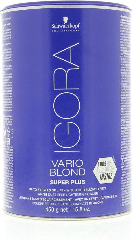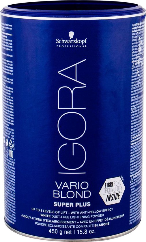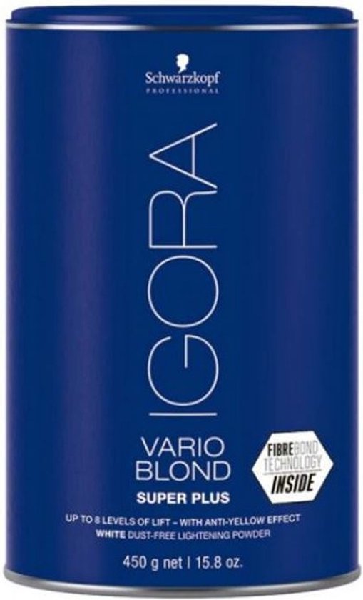 Schwarzkopf Igora Vario Blond Super Plus met de geïntegreerde Fibre Bond Technologie die tot 8 tinten oplichting biedt, met minimale breuken voor eindeloze blond transformaties.