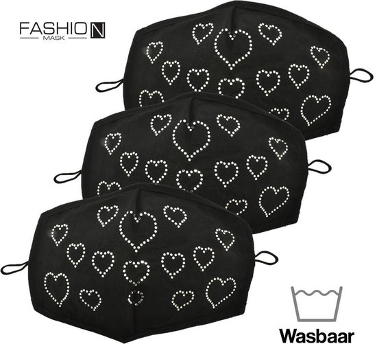 Fashion Mask Mondkappen Wasbaar – 3 Pack – Hearts