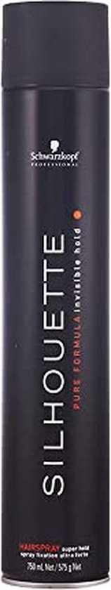Silhouette Hairspray Super Hold geeft super strong hold terwijl glans en vitaliteit behouden blijven. De Silhouette Super Hold formule vormt een micro fijn laagje rond het haar voor maximaal volume en een lang houdbaar resultaat zonder het haar te belasten. Droogt snel. Plakt niet. Makkelijk uitkambaar. Gebruik: Spray direct op droofg haar van circa 30cm afstand. In kleine hoeveelheden sprayen.