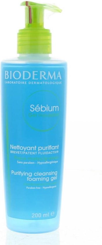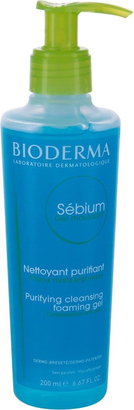Bioderma SA c bium Gel Moussant Nettoyant Purifiant Reinigende zuiverende schuimende gel voor de gemengde of vette huid Talgregulerende werking Parabenenvrij en hypoallergeen Gebruik Op de natgemaakte huid aanbrengen laten schuimen goed afspoelen en voorzichtig afdrogen