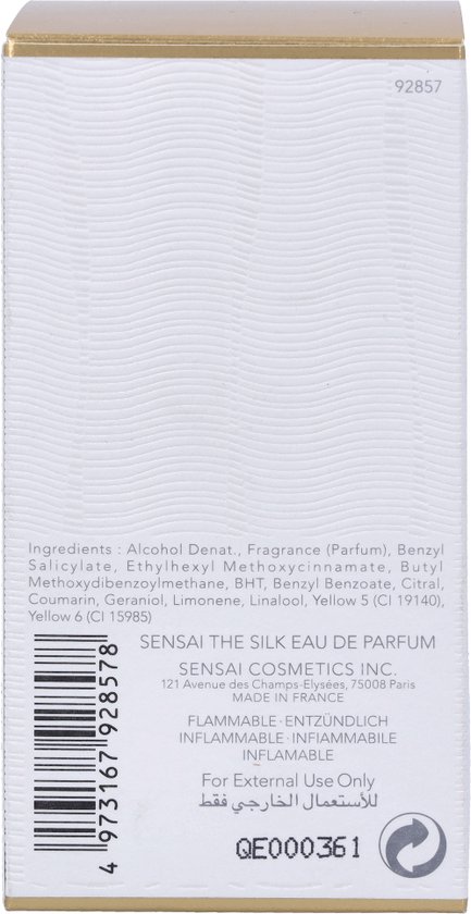 Ontdek nu The Silk Eau de Parfum, de oriëntaalse bloemengeur van het luxueuze merk SENSAI. De verfijnde geur is in 2015 uitgebracht en is geïnspireerd op hèt ingrediënt waar SENSAI om bekend staat: Koishimaru zijde. SENSAI The Silk Eau de Parfum staat symbool voor de vrouwelijke schoonheid en benadrukt de vrouwelijke zachtheid als een zijden sluier. The Silk Eau de Parfum opent met noten van bergamot, roze peper, peer en viooltjesblad. Het bloemige hart van SENSAI The Silk wordt gevormd door pioenroos, lelietjes van dalen, orchidee en warme amber. De basisnoten van The Silk Eau de Parfum bestaat uit tonkaboon en muskus. Behalve een unieke samenstelling van geurnoten, is ook de flacon uniek in zijn soort. Ook deze is geïnspireerd op het unieke zijden element van SENSAI en doet denken aan een zijden cocon.