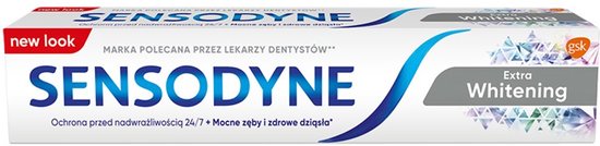 Sensodyne Tandpasta – Extra Whitening 75 ml, De tandpasta Sensodyne Extra Whitening is bedoeld voor het zacht bleken van de tanden. Verwijdert effectief ongewenste aanslag van de tanden en beloont je bij regelmatig gebruik met een nog stralender glimlach. bleekt tanden, garandeert zachtheid voor het tandglazuur, verwijdert tandsteen en tandplak, verfrist de ademhaling, vermindert de gevoeligheid van de tanden, Inhoud: Sensodyne Tandpasta – Extra Whitening 75 ml