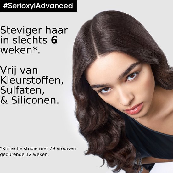 De L’Oréal Professionnel Serioxyl Denser Hair Serum is een serum speciaal ontwikkeld voor dunner wordend haar. Het serum maakt het haar voller haar, door de haardichtheid te vergroten. De werkende stof Stemoxydine zorgt voor de vergroting en extra activiteit in de haarzakjes, wat de haarzakjes verbetert en de haardensiteit verhoogt. Naast haarverdikking heeft het serum ook hoofdhuidbeschermende eigenschappen. De haardikte zal na 6 weken dagelijks gebruik met zo’n 1700 haren toenemen*.