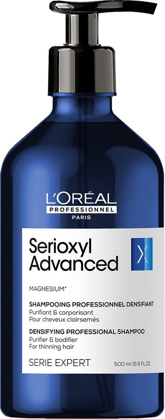 L’Oréal Professional Serioxyl Advanced Purifier & Bodifier Shampoo Voor Dunner Wordend Haar is speciaal geformuleerd voor iedereen die last heeft van dunnere plekken en een gevoelige hoofdhuid. De Purifier & Bodifier is lichte gel en zuivert zacht en helpt om het gevoel te geven van vernieuwde densiteit. Het haar wordt voller en stralend. De Purifier & Bodifier Shampoo is verrijkt met magnesium*. Het helpt de haarwortels te zuiveren van productresidu dat een gezonde haargroei kan beïnvloeden.