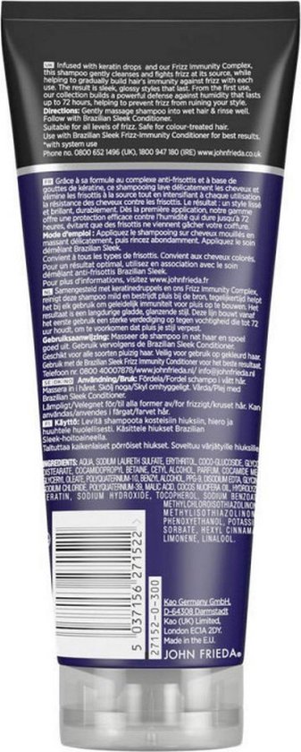 Wil je je schoonheid extra in de verf zetten? Dat kan perfect met de hulp van Shampoo John Frieda Frizz Ease Brazilian Sleek (250 ml)! Geniet van de voordelen en geneugten van John Frieda producten en andere haaraccessoires van 100% originele merken.