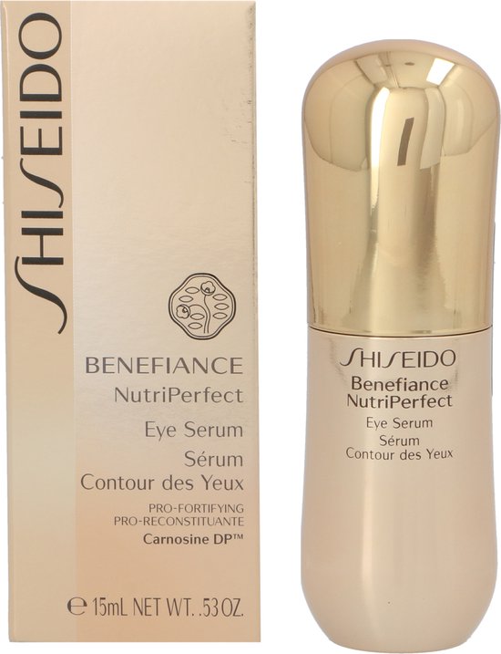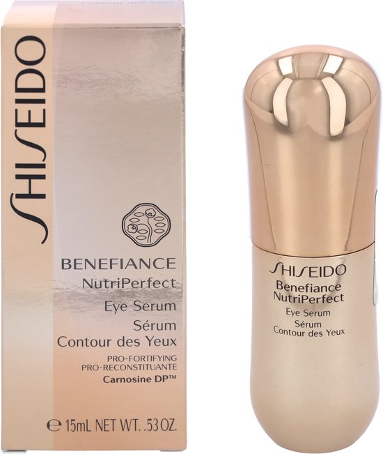 Shiseido Benefiance NutriPerfect Eye Serum biedt de rijpere huid een essentiële infusie van voedingsstoffen die hormoon-gerelateerde veranderingen tegengaat. Geconcentreerde Carnosine DP verbetert de elasticiteit en stevigheid van de kwetsbare huid rond de ogen drastisch en vermindert rimpels voor een jeugdige uitstraling. De speciale formule bevordert de collageenproductie, waardoor de huid steviger en veerkrachtiger wordt. Herstelt jeugdige vitaliteit en vermindert rimpels en verslapping van de oogcontouren.