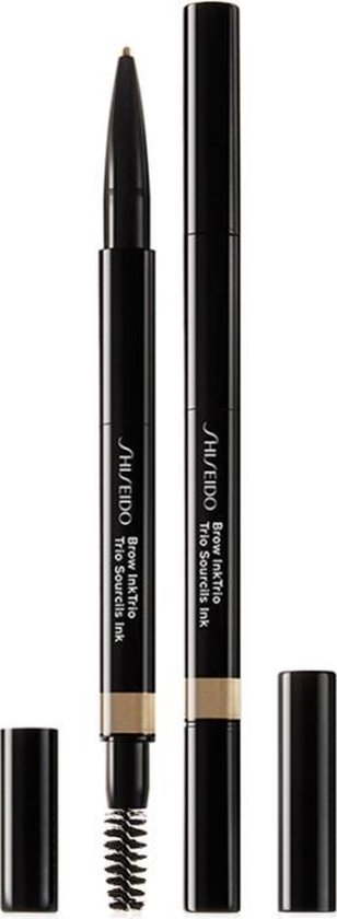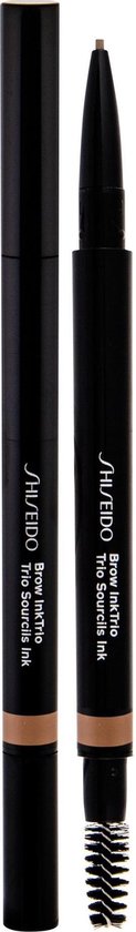 Shiseido Brow InkTrio Dit wenkbrauwpotlood is zeer lichtbruin van kleur en heeft een gladde punt aan de ene zijde en aan de andere zijde een borsteltje In het middenstuk zit een sponsapplicator Met het borsteltje kan het wenkbrauwpotlood uitgeveegd worden voor een verzachtend effect Op deze manier kan er in een handomdraai een mooie en strakke wenkbrauw gecreeerd worden Met de sponsapplicator kunnen de wat grotere lege plekken gemakkelijk ingekleurd worden Gebruik Voor gebruik kam de wenkbrauwen met het borsteltje Vul de gaten in de wenkbrauwen op met dit potlood en teken de wenkbrauwen bij Eventueel na het tekenen de wenkbrauwen nog eens doorkammen om het product te verdelen Dermatologisch en opthalmologisch getest