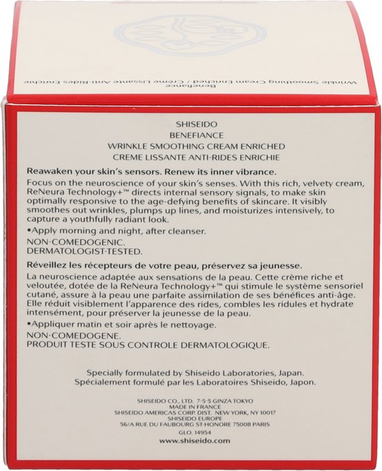 Shiseido Huidverzorging Benefiance Wrinkle Smoothing Cream Enriched Creme Anti Aging NormaleDroge Huid 50ml
