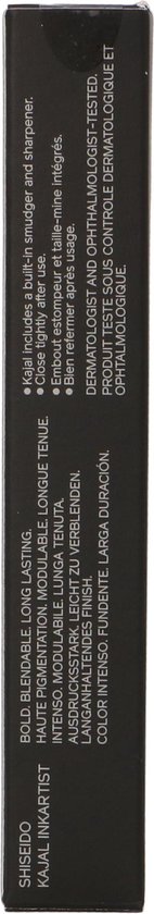 Shiseido Kajal InkArtist Dit is een 4 in 1 product eyeliner kajal oogschaduw en wenkbrauwpotlood De formule is zacht vlek water en scheurproof In het potlood zit een afneembare puntenslijper verwerkt Daarnaast zit er een ingebouwde spons in het potlood Met deze spons kan er een mooie smokey eye gecreA