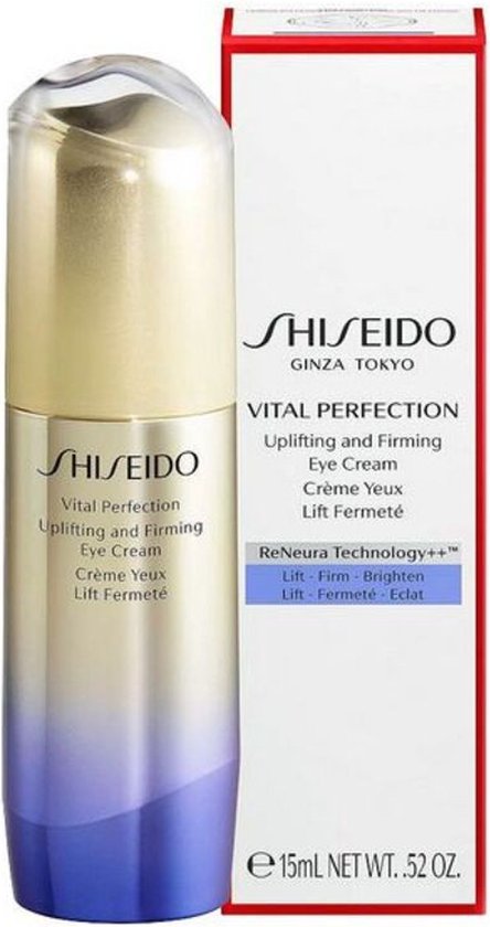 Shiseido Vital Perfection Uplifting and Firming Eye Cream 15 ml bestrijdt de oorzaken van huidveroudering rondom de oogcontouren en laat tekenen van vermoeidheid verdwijnen. Herontdek je stralende huid en benut haar potentieel met de ReNeura Technology++ voor een snelle en doeltreffende werking tegen huidveroudering. Ontdek ook het MATSU-ProScult complex voor een strakkere en stralendere look. De producten uit de Vital Perfection lijn hebben een luxe en elegante geur van citrusvruchten en groene thee in combinatie met bamboe-orchidee en hout- en muskusnoten. Vital Perfection Uplifting and Firming Eye Cream is dermatologisch en oftalmologisch getest.