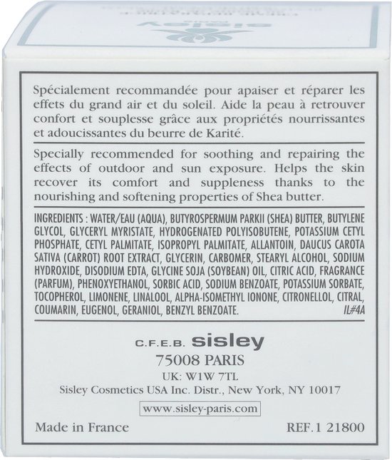 Sisley Restorative Facial Cream With Shea Butter is een herstellende gezichtscrème die de huid beschermt tegen invloeden van buitenaf. De crème is geformuleerd met karité boter, ook wel bekend als shea butter, dat bekend staat om zijn voedende en kalmerende eigenschappen. De crème herstelt en kalmeert de beschadigde huid en hydrateert deze zodat hij weer soepel aanvoelt. De crème heeft een romige textuur.