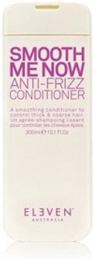 Eleven Australia Smooth Me Now Anti Frizz Conditioner De conditioner zorgt dat het haar een hele dag pluis en kroesvrij blijft De tarwe eiwitten en zetmeel verzorgen het haar en geven je de controle terug Gebruik Breng de conditioner aan op het schoon gewassen haar Laat 2 3 minuten intrekken vervolgens uitspoelen