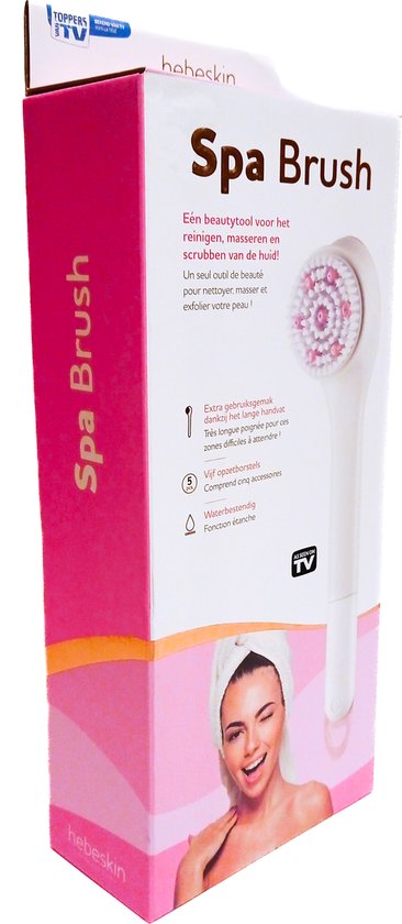 De set gepromoot op Toppers van TV biedt u een echte wellness-ervaring thuis of onderweg. De set bevat 5 accessoires voor het reinigen, masseren en exfoliëren van de huid: