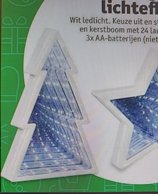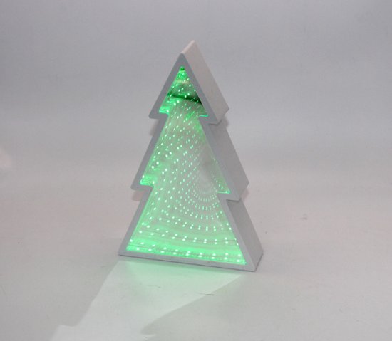 Spiegelbox met holografisch lichteffect van een kerstboom.