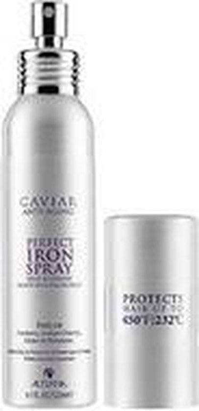 Alterna Cavia Anti Aging Perfect Iron Spray Deze hittebestendige spray beschermt het haar tegen hitte tot 232degC De flexibiliteit van het haar wordt vergroot om zo haarbreuk tijdens het stylen te voorkomen Het kaviaar extract rijk aan omega 3 vetzuren geeft vocht elasticiteit en glans aan het haar De vochtinbrengende botanische mix van ingredienten uit de zee hydrateren en voeden het haar Gebruik Spray op het haar voordat je de stylingtools gaat gebruiken