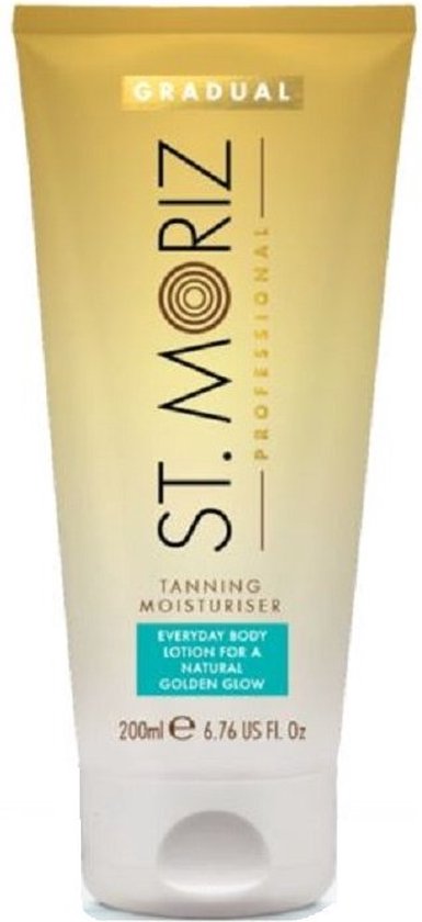 St. Moriz Professional Golden Glow Tanning Moisturiser is een bodylotion, speciaal samengesteld met aloë vera en vitamine E om de huid zacht aan te laten voelen en er mooi uit te laten zien! De bodylotion zorgt voor een natuurlijke en subtiele bruine teint, die lang glans behoudt. Bovendien heeft de lotion een frisse, zomerse geur en kan gecombineerd worden met alle zelfbruiners van St. Moriz. Ideaal voor beginners of ervaren tanners.