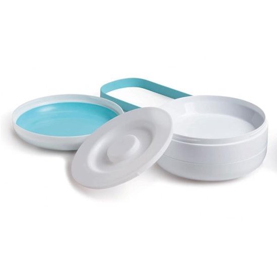 Prachtig ontworpen setje bordjes waar twee maaltijden gescheiden van elkaar in bewaard kunnen worden. Ideaal voor onderweg! De bordjes kunnen luchtdicht afgesloten worden en zijn dus ook lekdicht. Bovendien zijn ze geschikt voor de magnetron en vaatwasbestendig.