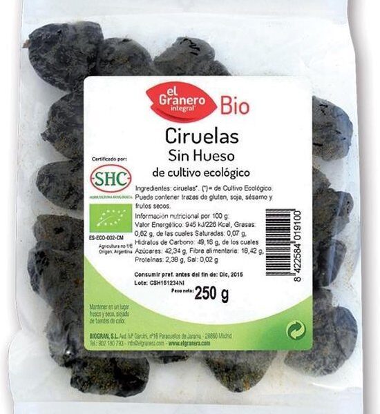 Granero Ciruelas S-hueso Bio 250g
