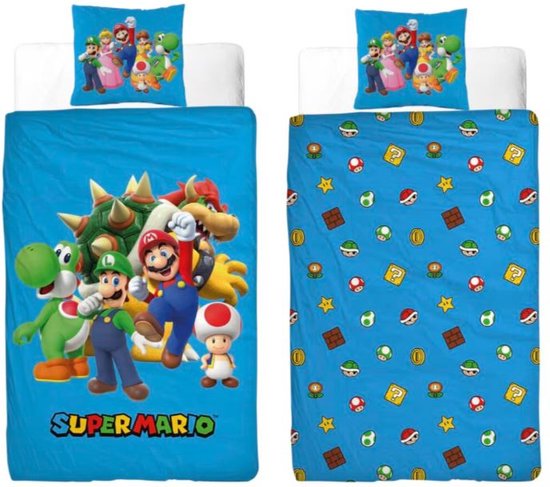 super mario dubbelzijdig dekbedovertrek – 1 persoons – met kussensloop – 140×200 cm