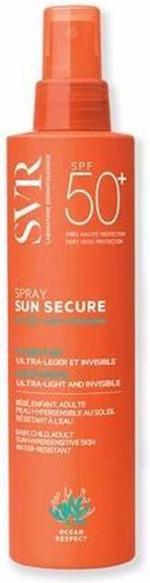 SVR Sun Secure Spray SPF50+ 200 ml is een hydraterende spray met een zeer hoge zonbescherming. Deze gepatenteerde combinatie van filters is anti-UVA en UVB, en anti-infrarood en zichtbaar licht om een beschermend schild voor de huid te vormen.De zeevriendelijke formule is waterbestendig en geschikt voor het hele gezin (baby’s, kinderen, volwassenen), ook voor de huid die overgevoelig is voor de zon.De ultrafijne melkachtige textuur voelt droog aan en laat een onzichtbare finish achter zonder witte vlekken. Multifunctioneel, bestand tegen transpiratie en wrijven. Octocryleenvrij. Gemaakt in Frankrijk.