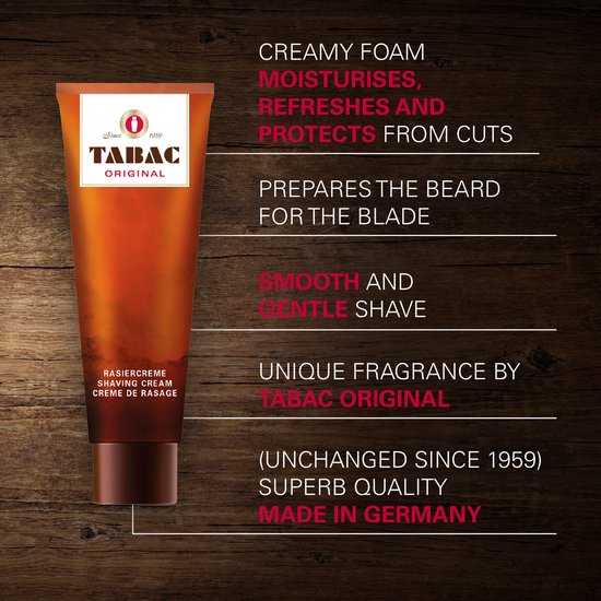 Tabac – TABAC shaving cream 100 ml is een exclusief kwaliteitsproduct voor mannelijke lichaamsverzorging. Als je altijd op zoek bent naar de beste toiletartikelen voor mannen zijn de 100% originele Tabac producten precies wat je nodig hebt.