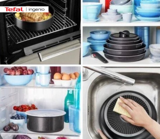 Tefal Ingenio Easy Cook’N Clean 3-delig Hoogwaardig Alluminium Pannenset – Braadpan 22 cm + Steelpan 18 cm Inclusief Ingenio Hangreep