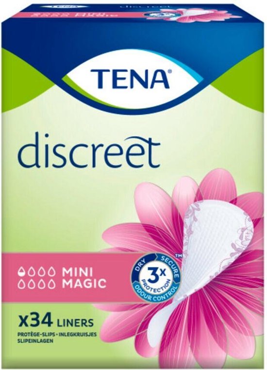 Als het eerste micro-miniproduct in zijn soort is TENA Lady Mini Magic(TM) een echte doorbraak op het gebied van discrete bescherming. Dit product is ideaal als u slechts af en toe een paar druppels urine verliest. Met een lengte van 152 mm en een dikte van 3 mm is dit verband net zo klein als een gewoon inlegkruisje, maar met een veel groter absorptievermogen. Dat komt omdat het is ontworpen om snel urine te absorberen met de nieuwe QuickDry(TM) toplaag en af te voeren naar de LockAway Core(TM). Dat houdt het product voelbaar en meetbaar droger.