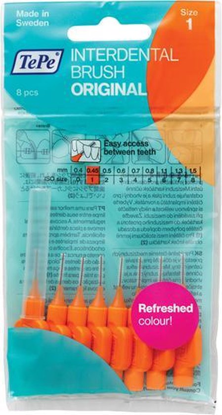 TePe Tandenragers zijn een welkome aanvulling op de dagelijkse mondverzorging, aangezien tandenpoetsen alleen niet voldoende is voor een gezonde mond. Naast TePe Tandenragers Origineel 0,45 mm Oranje zijn er nog 8 andere maten. Iedere maat is herkenbaar aan de eigen kleur, want de serie is uitgerust met een kleurcoderingssysteem.