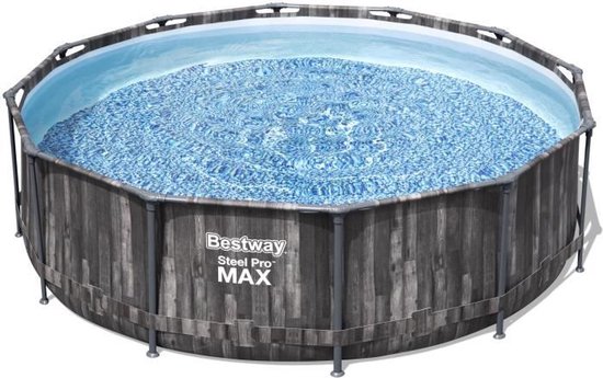 BESTWAY SteelPro Max rond bovengronds zwembad Houtdecor, 366 x 100 cm, patroonfilter, ladder, Chemconnect-diffusor