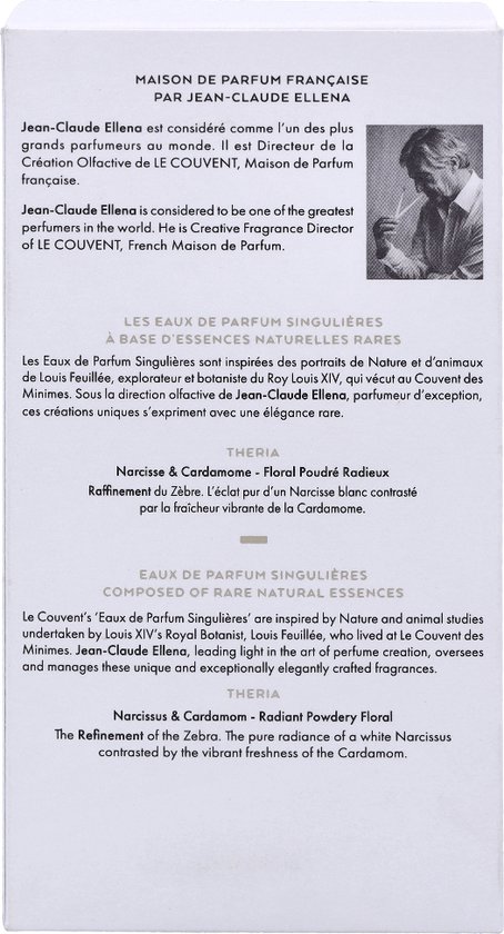 Singuliere Theria by Le Couvent Maison de Parfum is a fragrance for women and men. Singuliere Theria was launched in 2021 and the nose behind this fragrance is Jean-Claude Ellena.