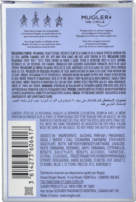 Roept een gevoel van sensualiteit en ultravrouwelijkheid op: Opgewarmd door de oriëntaalse versies van vanille absolue en de meeslepende, verleidelijke overdosis patchouli: het toppunt van vrouwelijkheid. De asymmetrische stervormige flacon staat voor de belichaming van de droom in het echte leven, van een eindeloze wereld binnen ieders handbereik, van oneindige mogelijkheden die voor het grijpen liggen. MUGLER doet er alles aan om te zorgen voor meer verantwoorde luxe door unieke flacons te bieden, oneindig navulbaar bij de Mugler Fountain of met de navulflacon.