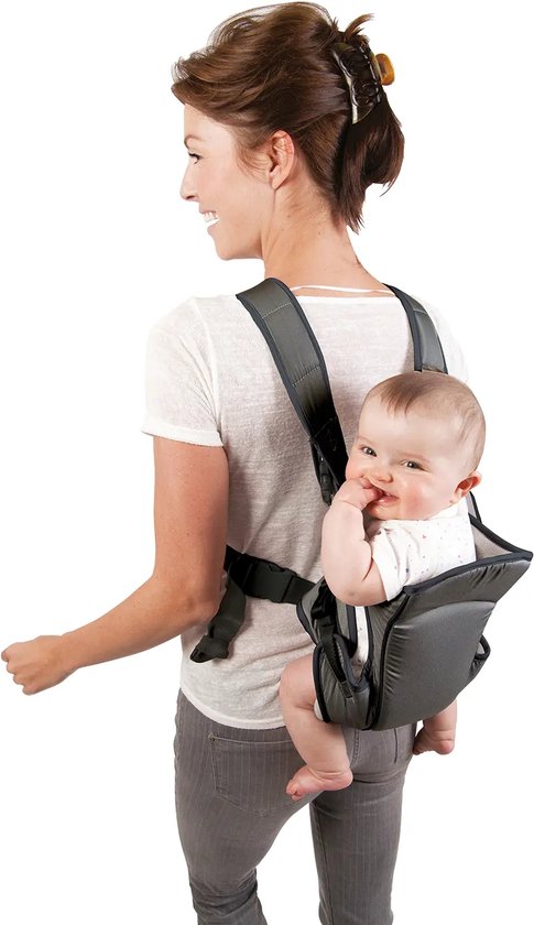 - Baby op de rug (vanaf 6 maanden): Ideaal voor comfortabele uitstapjes, waarbij je baby veilig op je rug rust.