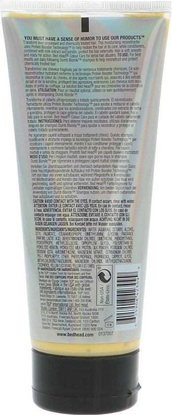 Wil je je schoonheid extra in de verf zetten? Dat kan perfect met de hulp van Tigi – BED HEAD DUMB BLONDE reconstructor 200 ml! Geniet van de voordelen en geneugten van Tigi producten en andere haaraccessoires van 100% originele merken.