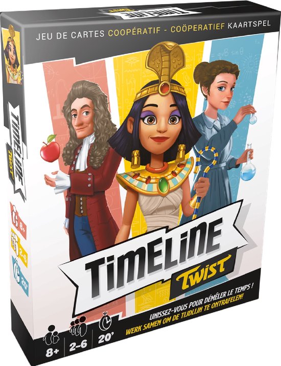 <p>Ga samen de uitdaging aan met Timeline Twist, een vernieuwde versie van het klassieke spel waarbij samenwerking centraal staat. In deze coöperatieve editie bundelen spelers hun krachten om historische gebeurtenissen in de juiste volgorde te plaatsen. Met 35 willekeurig getrokken kaarten moeten jullie als team overleggen, strategiseren en beslissingen nemen om de tijdlijn kloppend te maken.</p> <p>Tijdens het spel kunnen spelers tactisch de moeilijkste kaarten verwijderen, waardoor de puzzel iets eenvoudiger wordt. Maar pas op: elke keuze telt mee in jullie uiteindelijke score. Het doel? Spel na spel verbeteren door slim samen te werken en steeds preciezer de geschiedenis op een rij te zetten.</p>